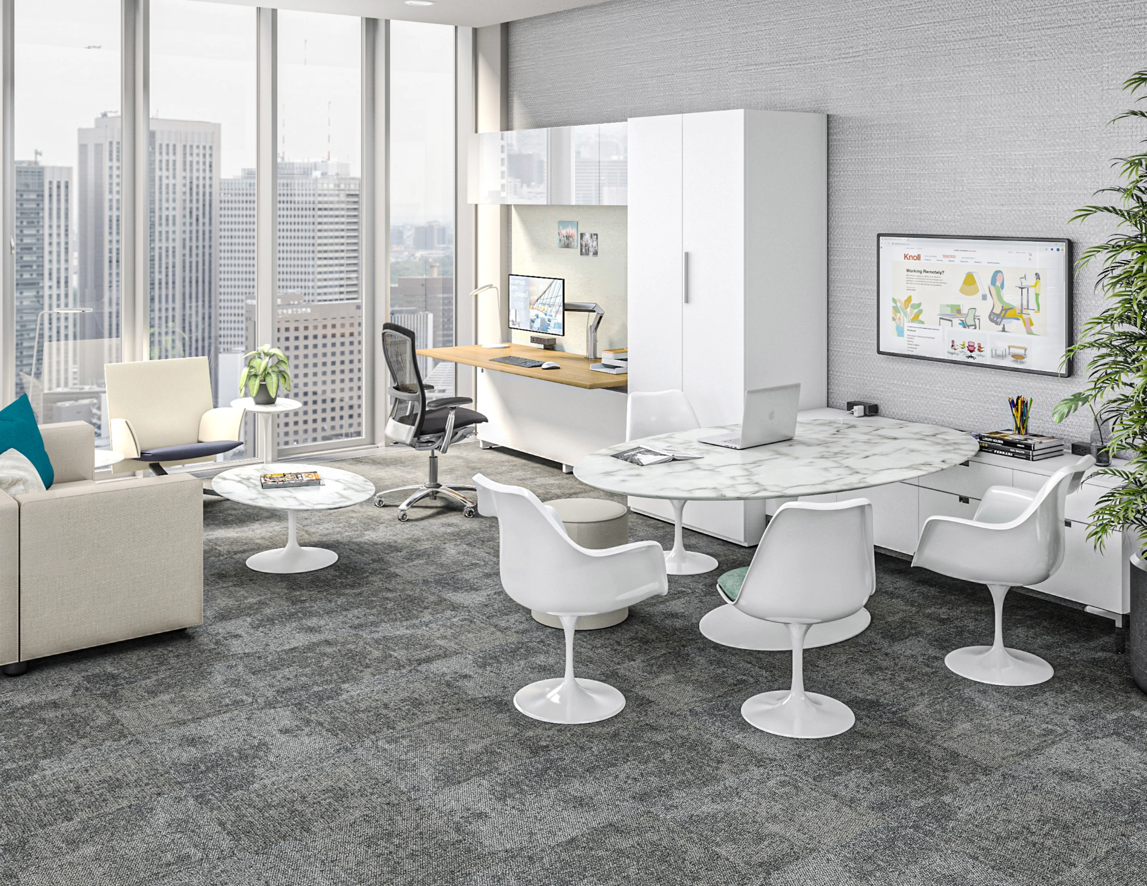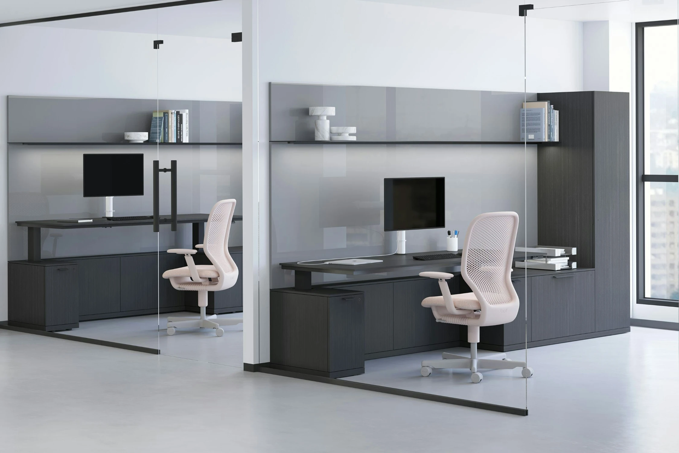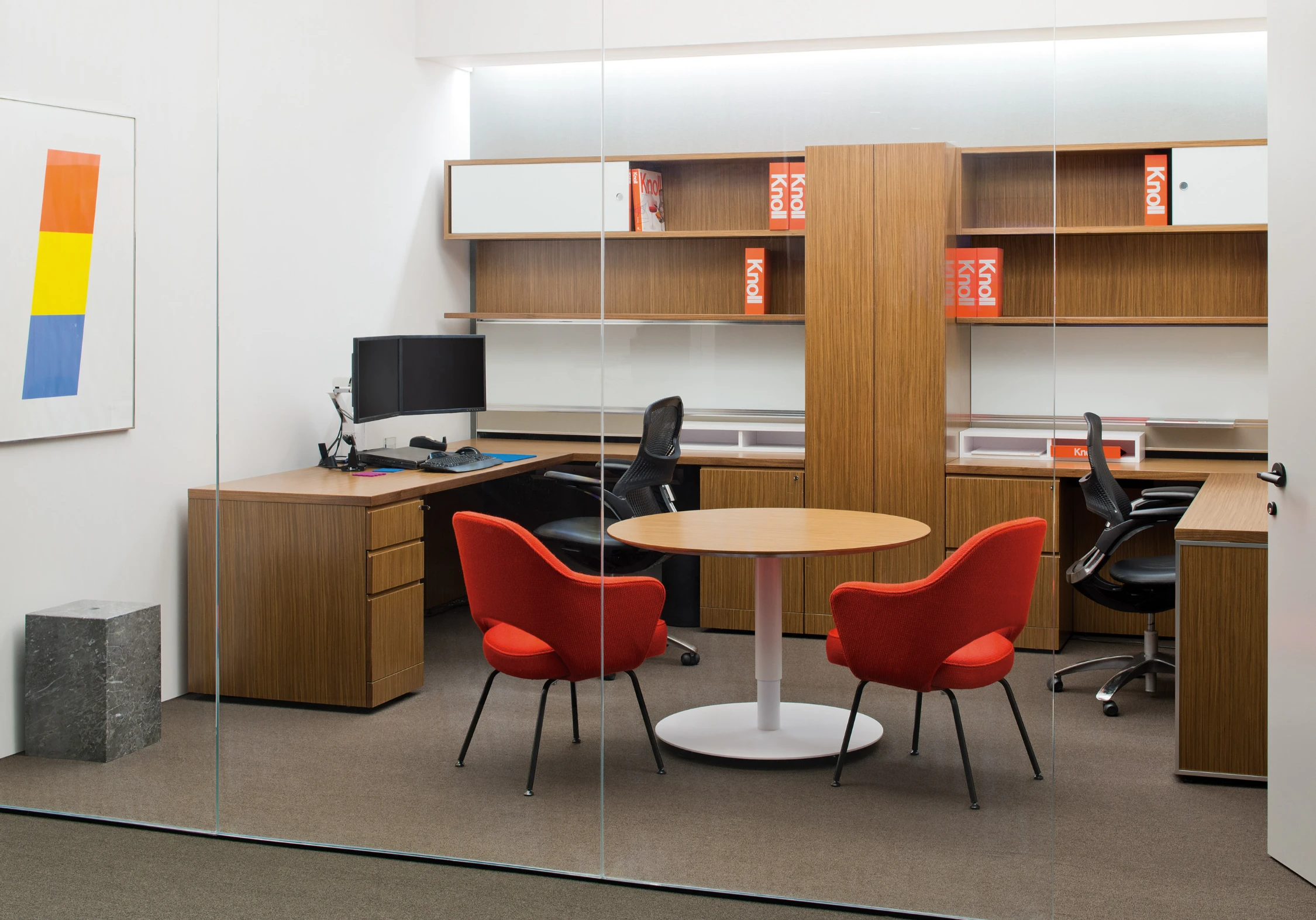Knoll Furniture systems combine performance features, clean lines and quality materials to deliver nimble private offices that support today’s technology rich, collaboration- focused workplace, flexibility and refined performance from executive offices to collaborative team spaces.