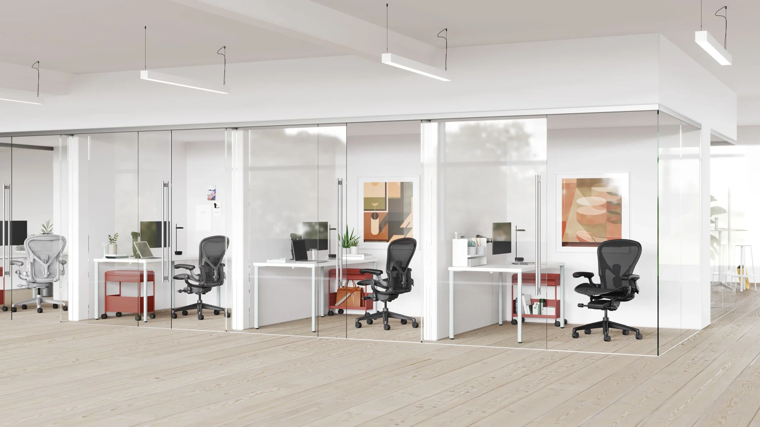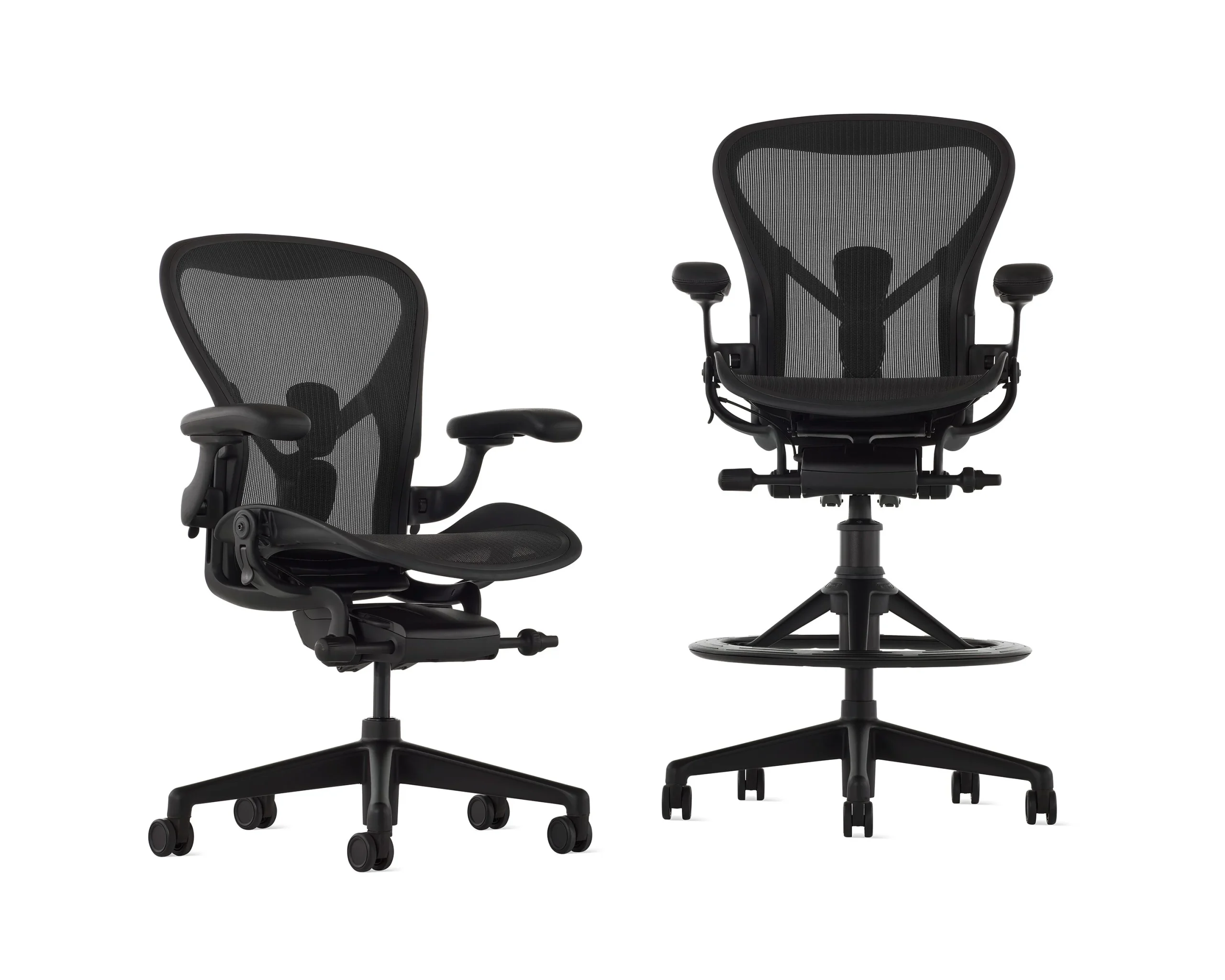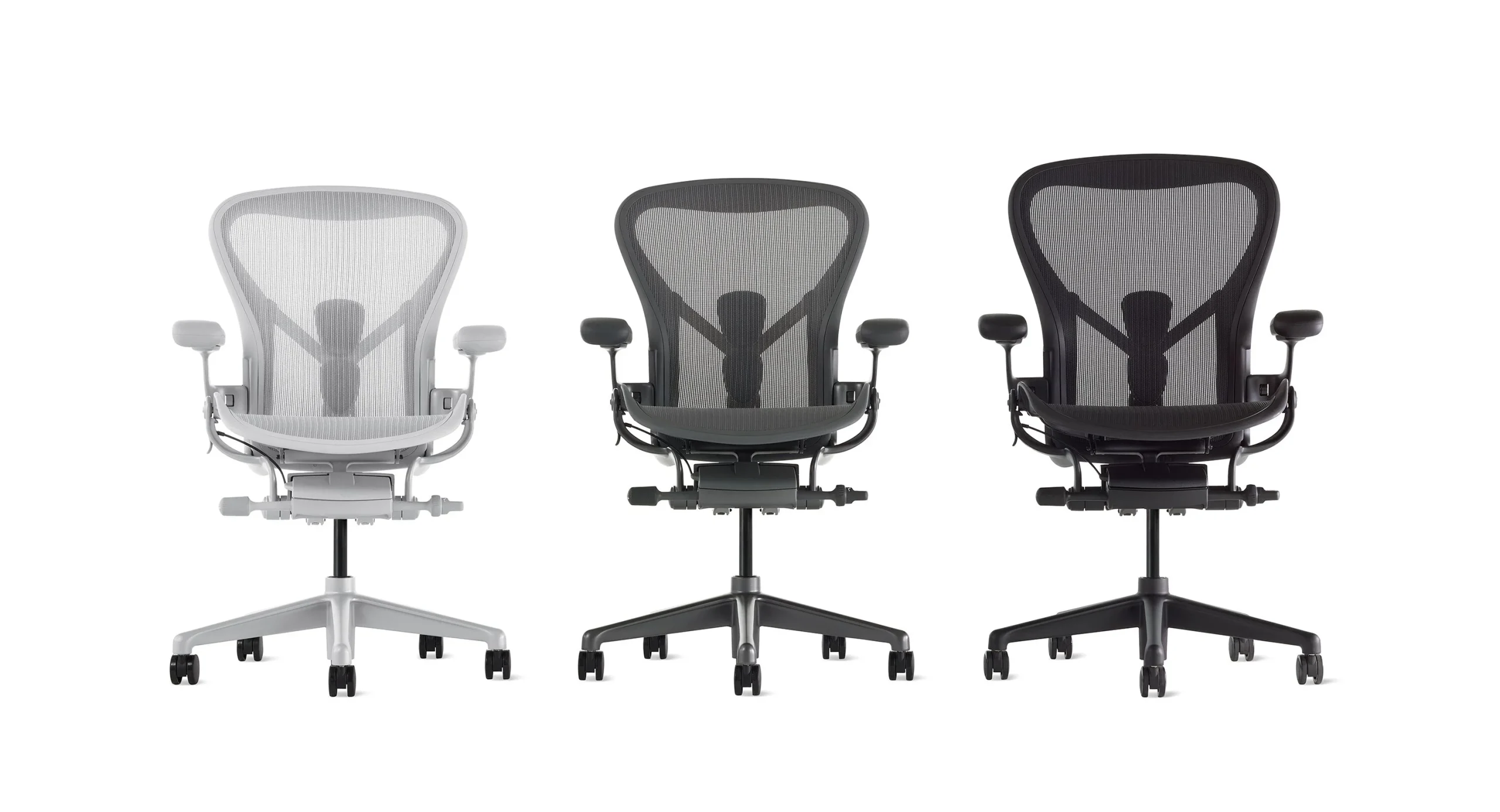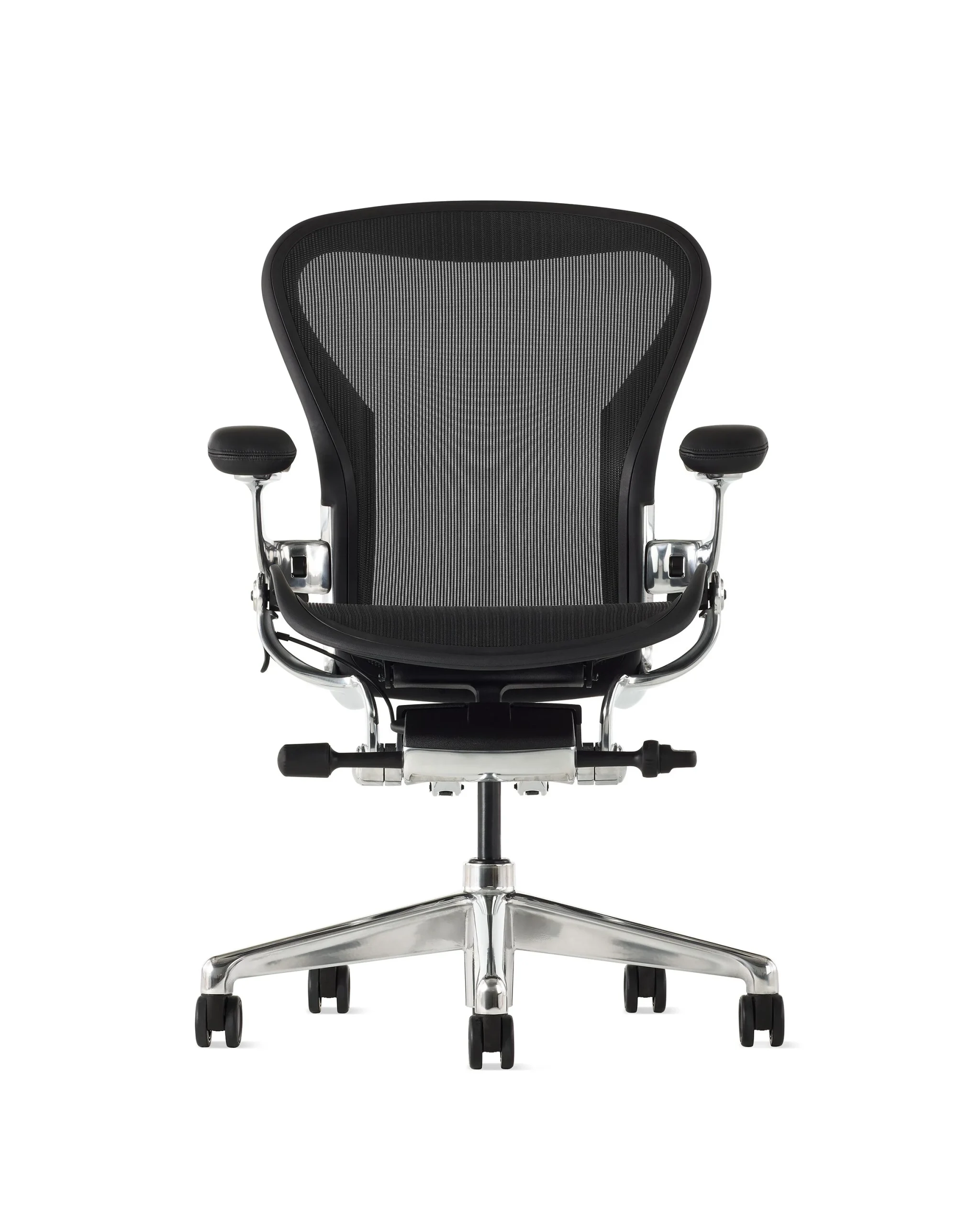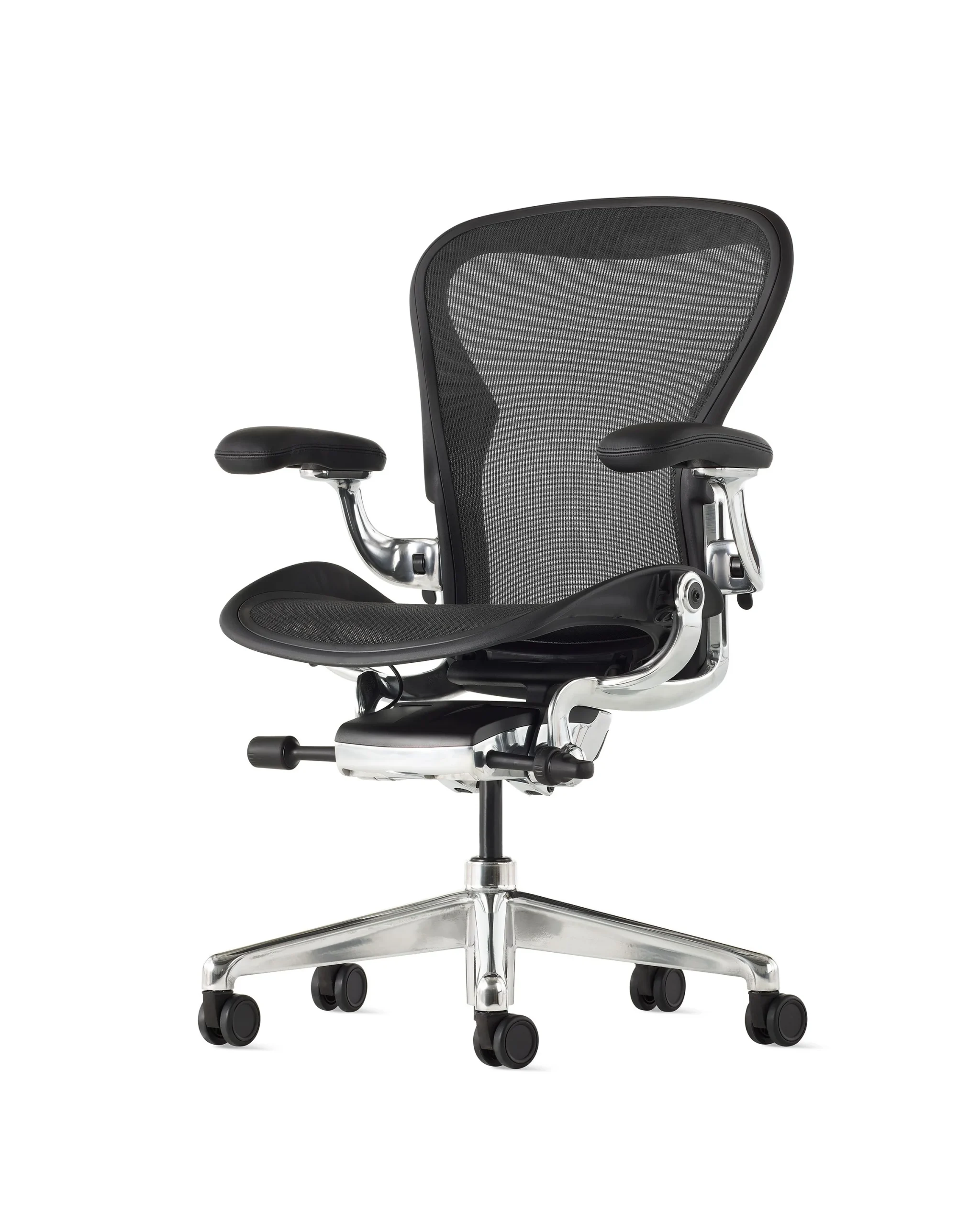 Ergonomic to the core, Aeron was designed for a wide range of body types, thanks to the extensive research from designers Bill Stumpf and Don Chadwick nearly 30 years ago. Its launch was pioneering in the office furniture industry—and it still is, thanks to updated research and material innovation, including the addition of ocean-bound plastic to the body of the chair.