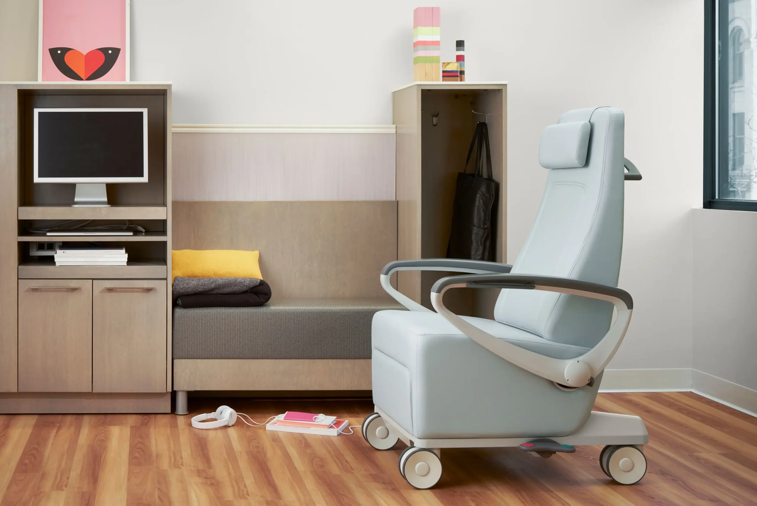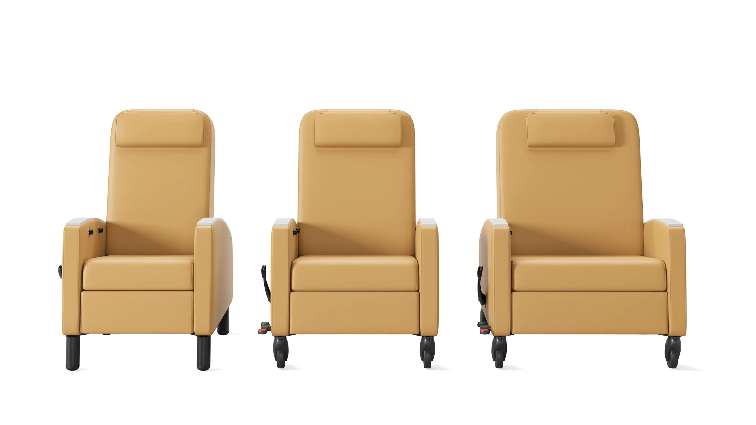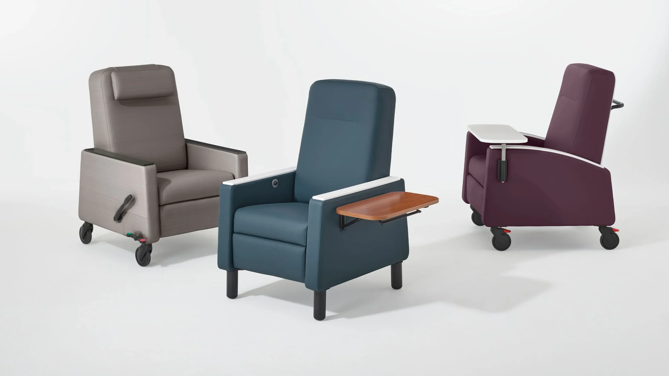 Versatile, mobile, and ergonomic recliners designed to enhance patient comfort across a variety of healthcare settings. These recliners combine easy-to-use features, adjustable positioning, and supportive design to accommodate activities such as resting, reading, or watching TV. With coordinated aesthetics, durable materials, and functionality suited to patient-care protocols, they provide comfort, flexibility, and style while supporting patient well-being and caregiver needs.